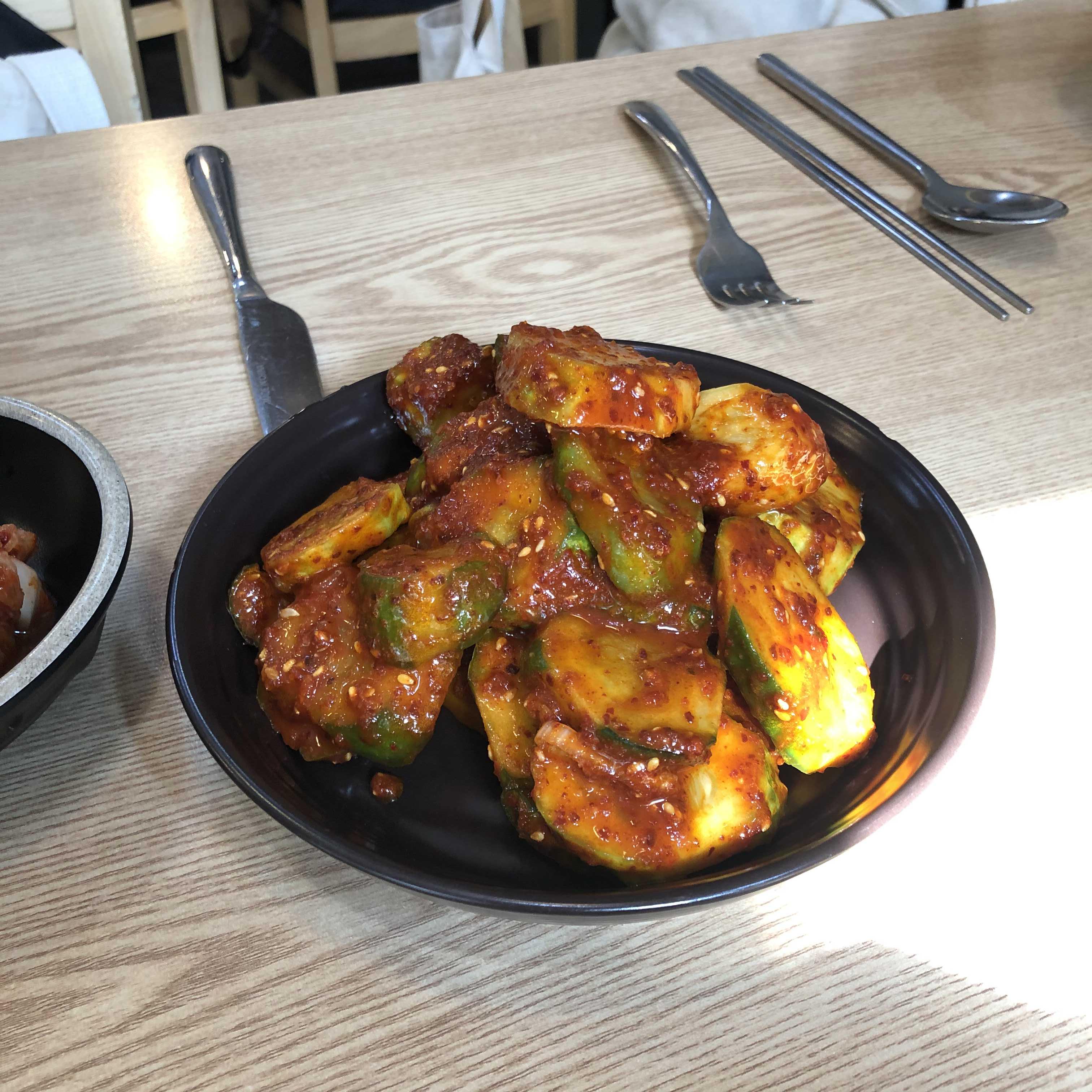_오오오!!!!!!! 바로 이것!!!!!!! 오이무침이 정말 예술이다. 주문하면 바로바로 무쳐주시는데 돈까스 바지락 칼국수랑 너무너무 환상 궁합!